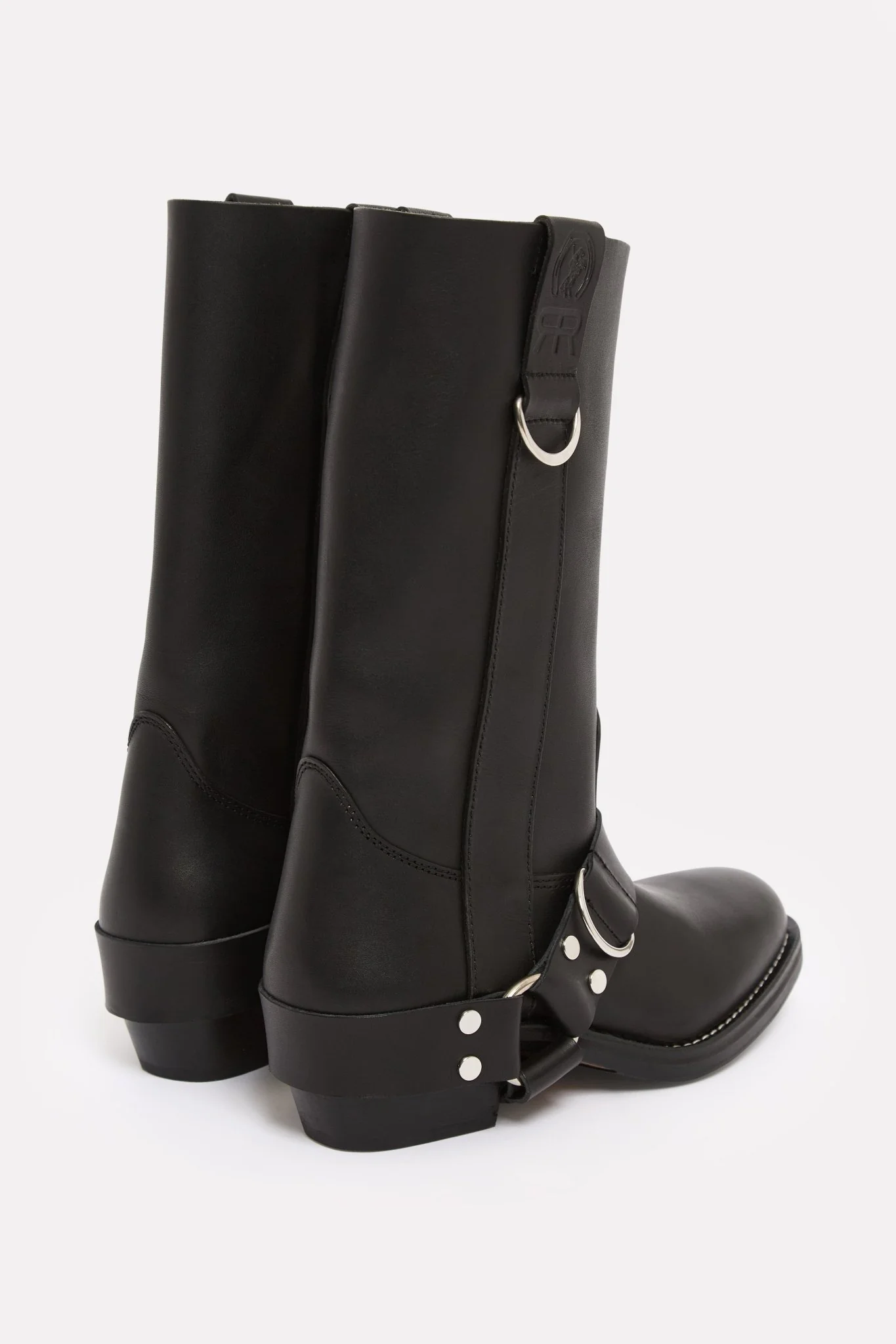 Bottes camarguaises en cuir lisse noir hauteur mollet