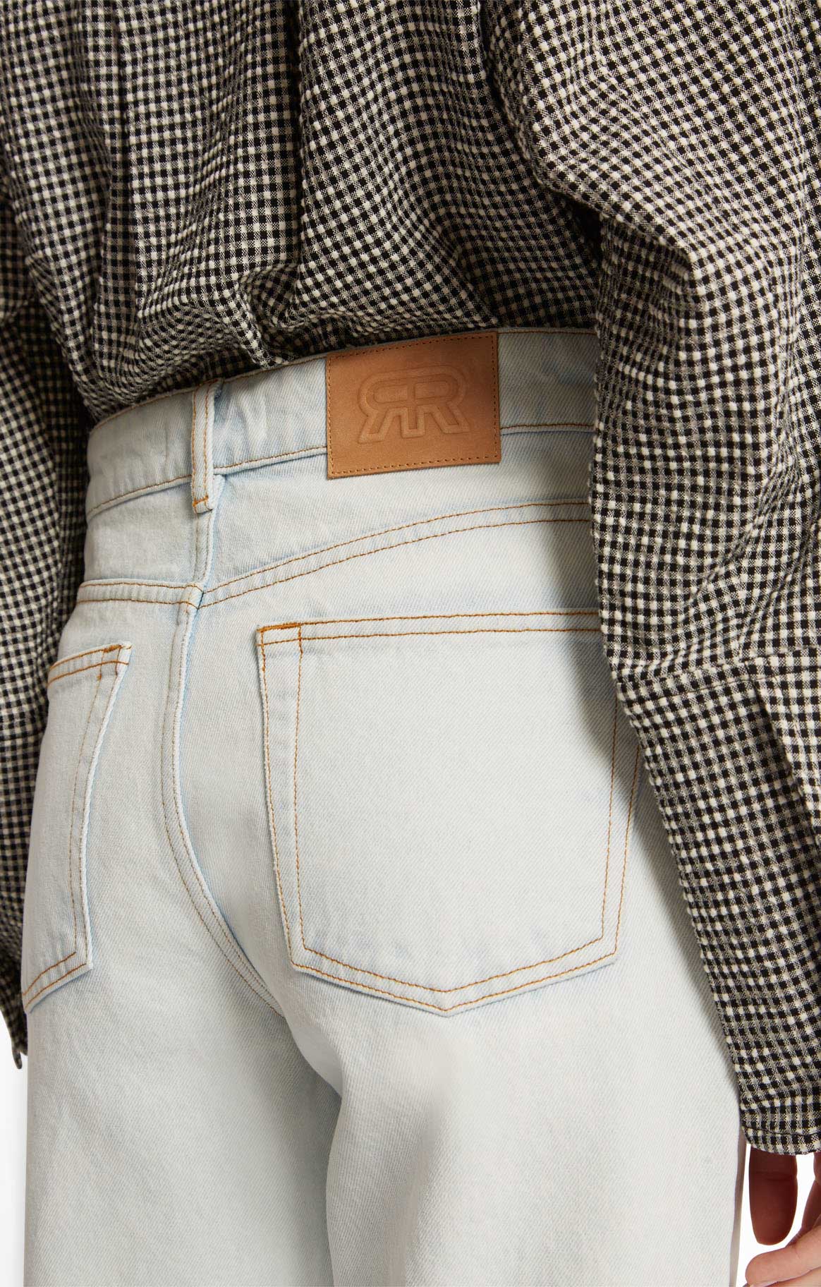 des poches plaquées au dos, une braguette zippée avec bouton métal ainsi qu'un jacron RR au dos.